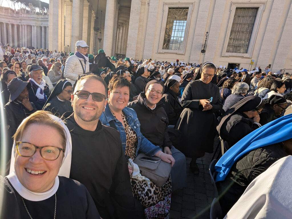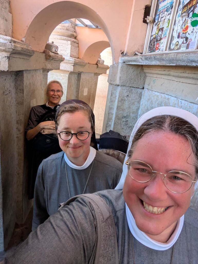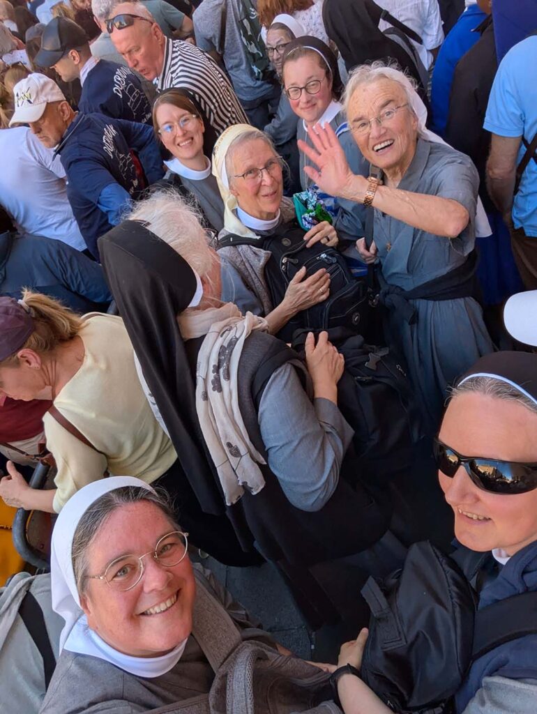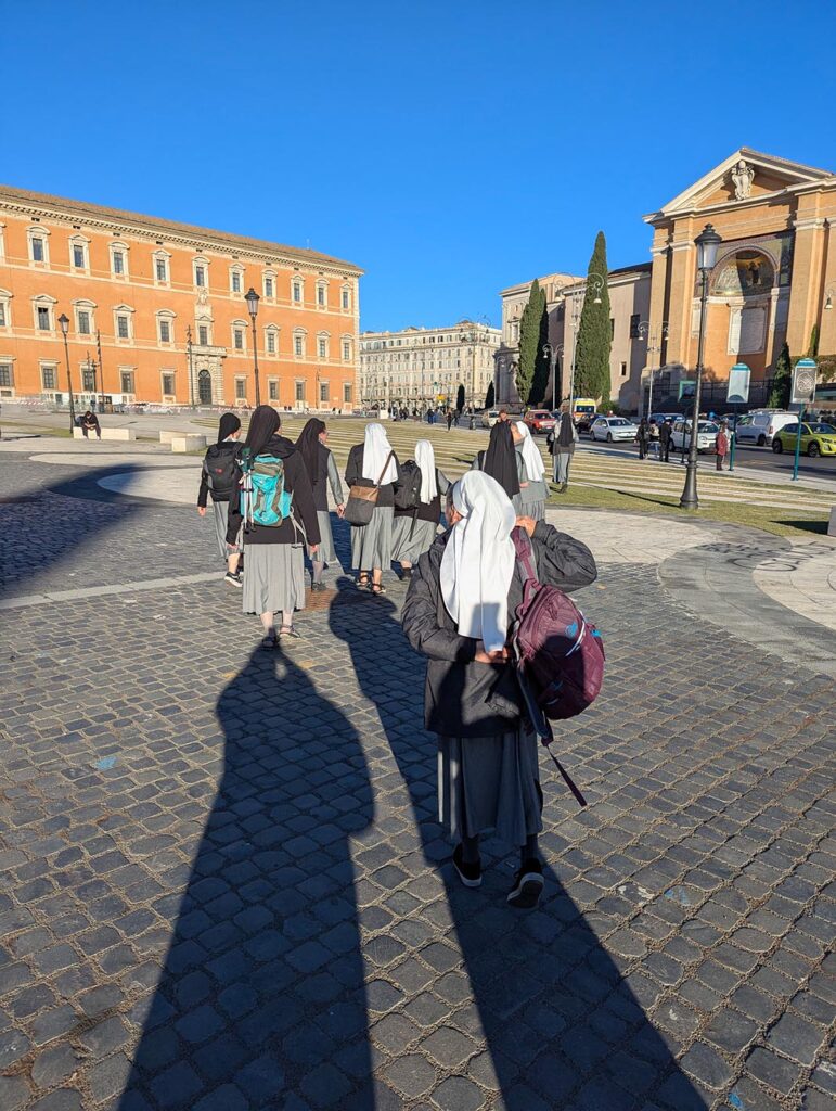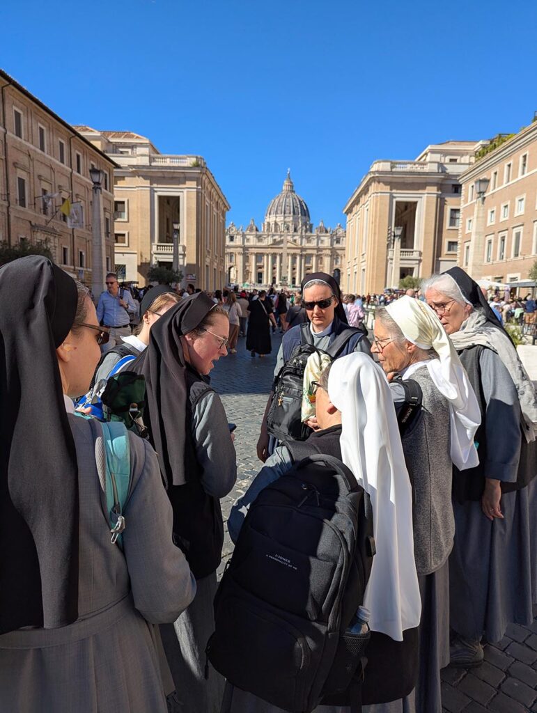Der verstorbene Papst Franziskus hat weltweit alle Ordensleute zu gemeinsamen Tagen im Heiligen Jahr nach Rom eingeladen. 12 Schwestern von uns haben sich als Vertreterinnen der Gemeinschaft auf den Weg gemacht und Gebetsanliegen durch die heiligen Pforten in Rom tragen. Für die vielen Erfahrungen von Gemeinschaft, Vielfalt an Ordensleuten, Weltkirche, Papsterlebnissen, Austausch untereinander, die Stadt Rom selbst, Pizza und vielem mehr sind wir sehr dankbar und wünschen uns und allen, dass „Pilger / Pilgerinnen der Hoffnung“ ein Motto der Zuversicht für die unsichere Zukunft unserer Welt sein kann.