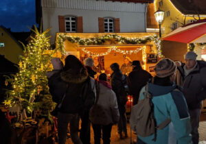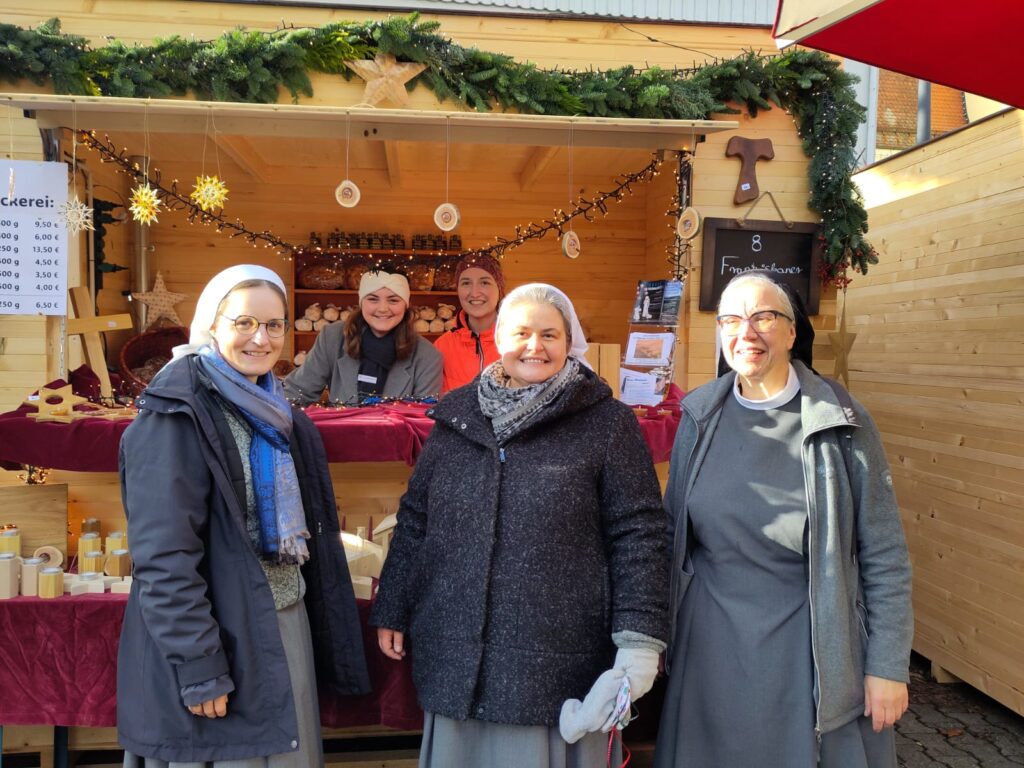 Schmucke Stimmung und ein Hauch von Glühwein und allerlei Düften durchzog die Luft beim „Sulgemer Advent“ in Bad Saulgau. Am letzten Adventswochenende waren wir Franziskanerinnen mit einem Stand dabei. Bereits beim Aufbau und Bestücken der Bude standen vormittags schon Menschen da, um die begehrten Leckereien aus der Klosterbäckerei zu erwerben. Das Sießener Brot, Früchtebrot, Zopfbrot, der lange gereifte Sießener Christstollen wechselten in Kürze den Besitzer. Neben den Backwaren gab es auch Produkte und Dekoratives aus der Klosterschreinerei und den verschiedenen Betrieben. Übrigens: es gibt auch im Klostercafé regelmäßig einen Brotverkauf und allerlei leckeren Kuchen vor Ort oder auch zum Mitnehmen.